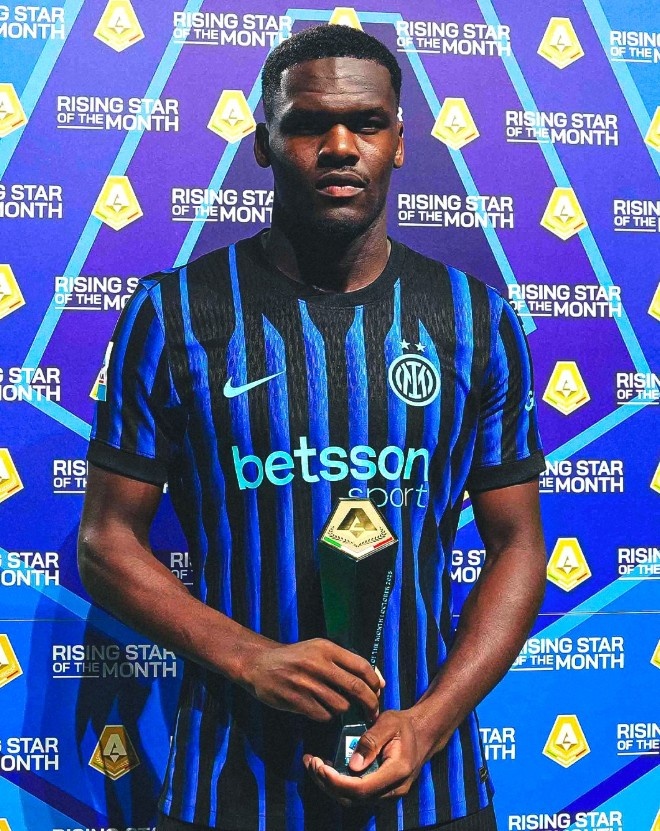4场两球4助!对阵拉齐奥前,国米前场球员博尼领取意甲月最佳球员奖项