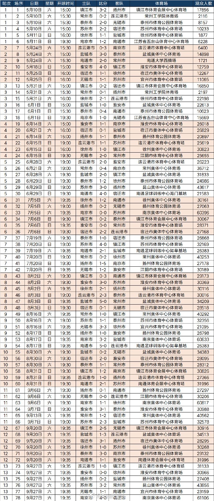 苏超出回合赛阶段现场观赛人群 人数达2118920人次,场均27166人