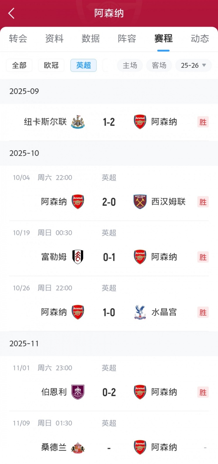 11月2日讯 英超第10轮阿森纳客场应战 2-0轻取伯恩利,约克雷斯和赖斯上半场各入一球。枪手取得各项赛事9连胜。