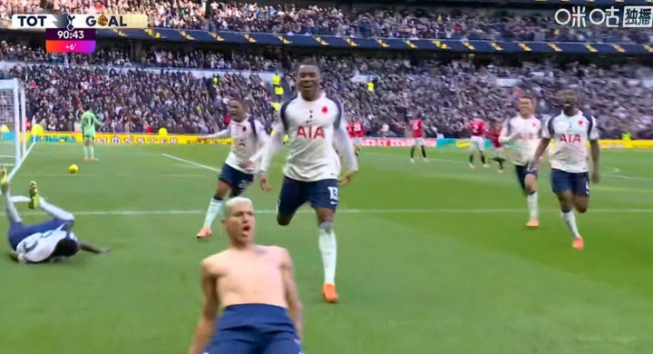 第91分钟破门反超曼联!里沙利松脱衣滑跪庆祝,随后捂脸情难自已