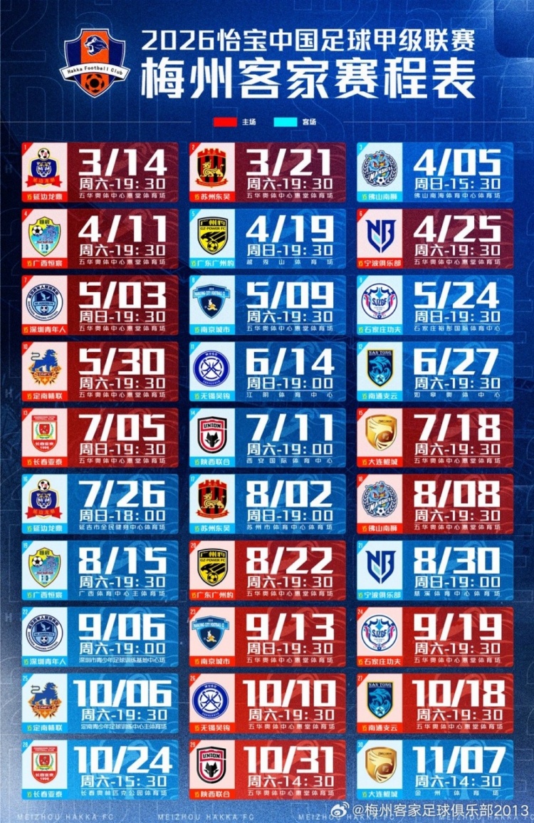 > 收藏 | 梅州客家2026比联赛季赛程表表
