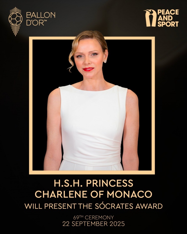 官方:苏格拉底奖将由摩纳哥夏琳王妃颁发,她曾是奥运泳动 体育选手
