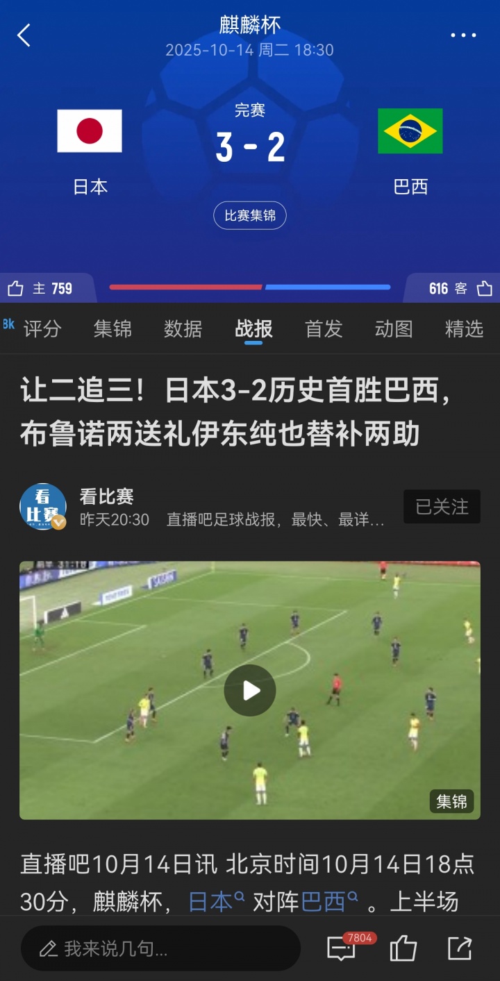 让2追3的一天!日本男足让2追3反转 巴西 日本男乒被让2追3不敌中国
