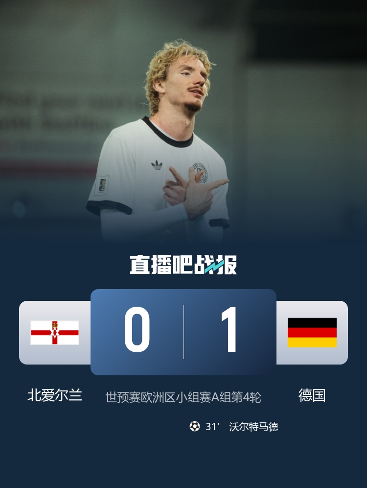世预赛-德国1-0北爱尔兰取3连胜 沃尔特马德制胜阿德耶米失单刀赴会