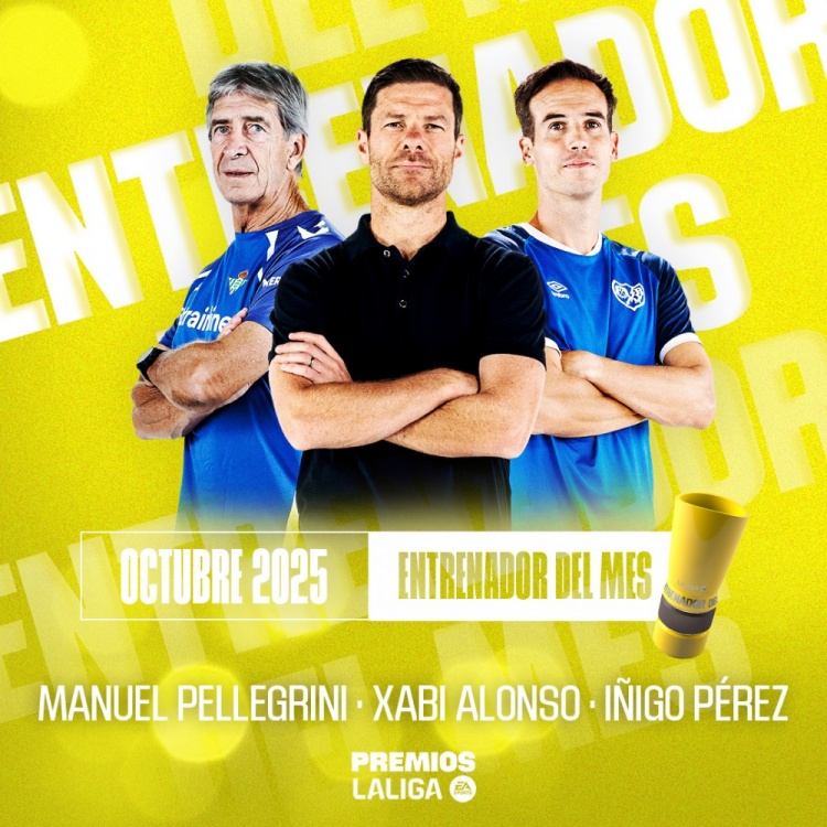 西甲10月最佳主帅候选:阿隆索、佩莱格里尼、伊尼戈-佩雷斯