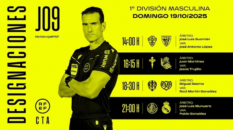 主裁判 :何塞-路易斯-穆努埃拉,VAR裁判 :巴勃罗-冈萨雷斯。