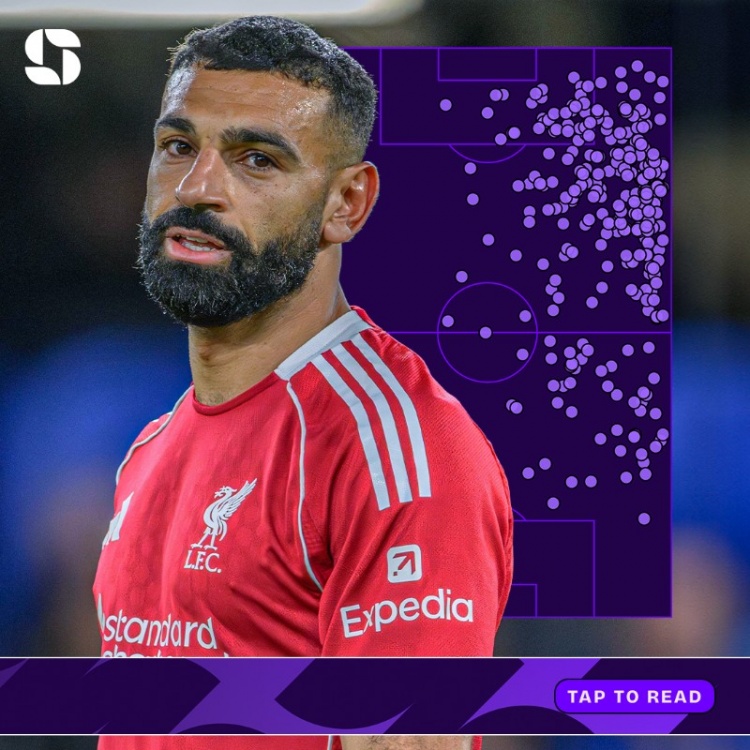 竞技状态 不佳!萨拉赫本赛季平均每90分钟仅1.3次射球 、5.6次危险区域 触球